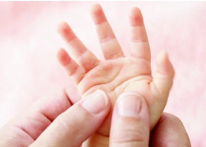به آرامی تک تک انگشتان دست کودک را بین انگشت شصت و صبابه خود، از دوطرف انگشت نوزاد، به سمت نوک انگشت مالش دهید انگشتان نوزاد به آرامی از میان انگشتان شما لیز بخورد.