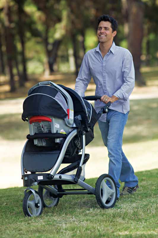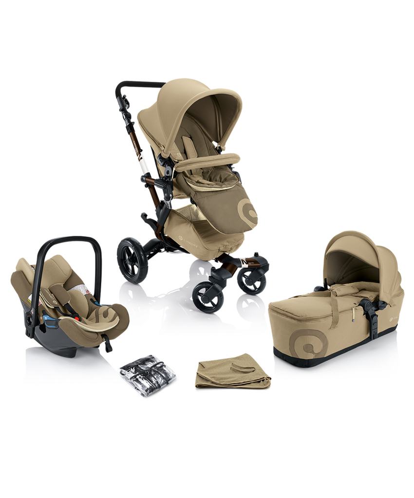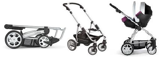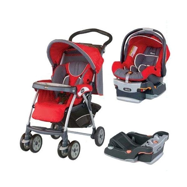 سیستم مسافرتی شامل یک کریر (صندلی ماشین نوزاد)، پایه صندلی ماشین و یک کالسکه است.